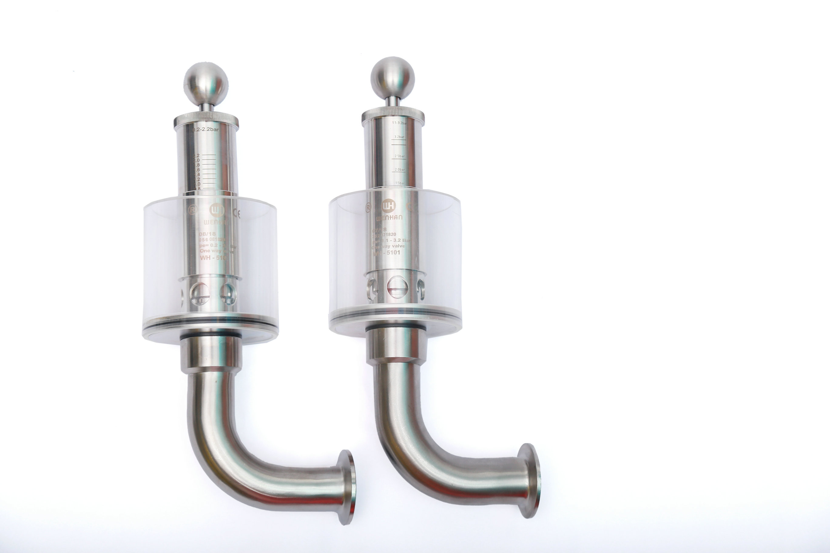 調節單向排氣閥保護容器壓力過高防爆作用,當壓力高于設定壓力(標準1BAR)時可以排氣,反之關閉,調節桿標上壓力刻度,所需壓力按刻度上調整,該閥門使用方便,刻度準確,玻璃罩加水能看到發酵效果,減少染菌。同時也可以滿足于各種生產工藝需求,適用于各種食品加工,啤酒,飲料以及制藥等各種工業領域。